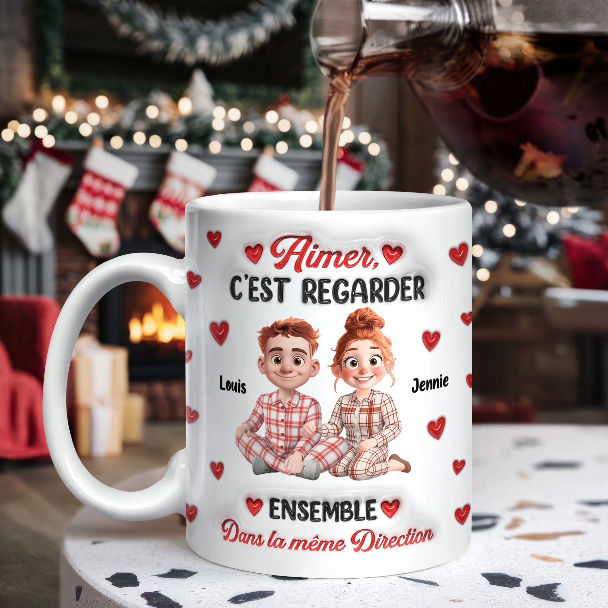 Aimer, C’est Regarder Ensemble Dans La Même Direction - Mug Personnalisé 3D Gonflé Effet
