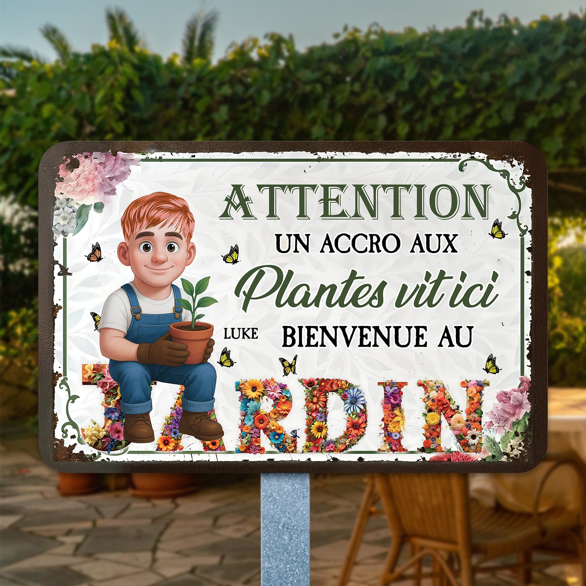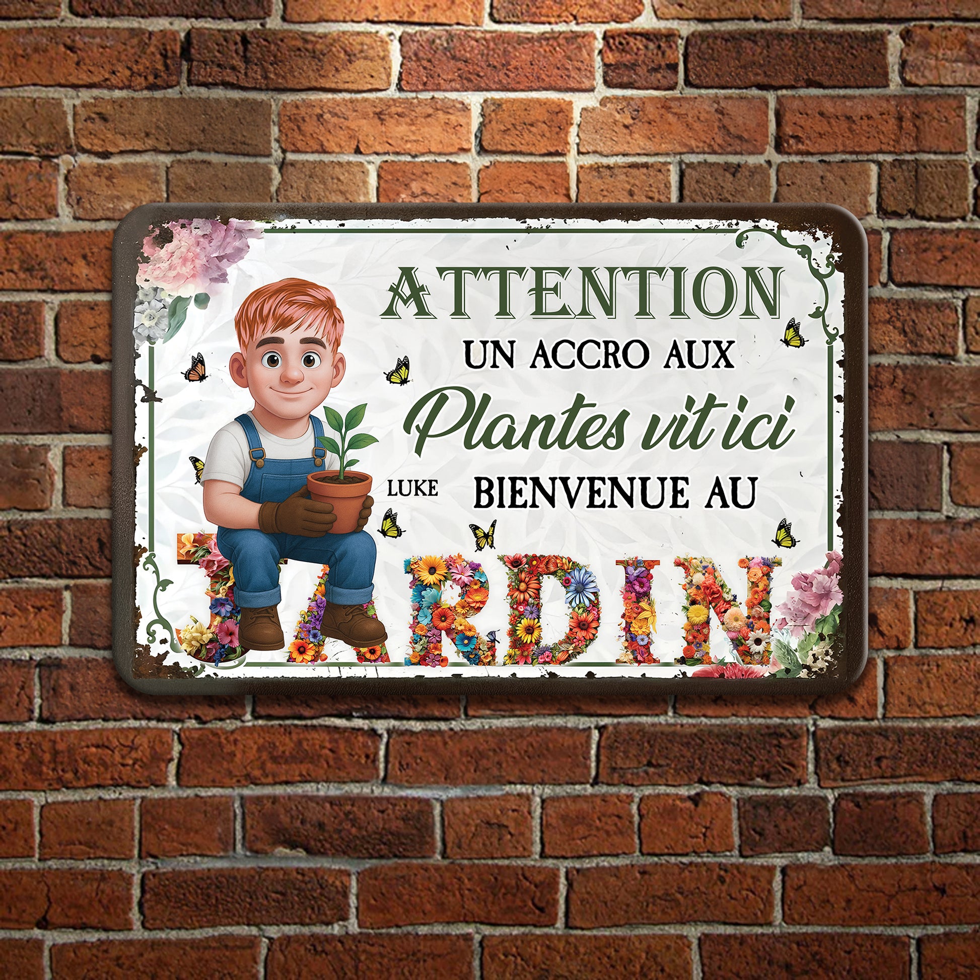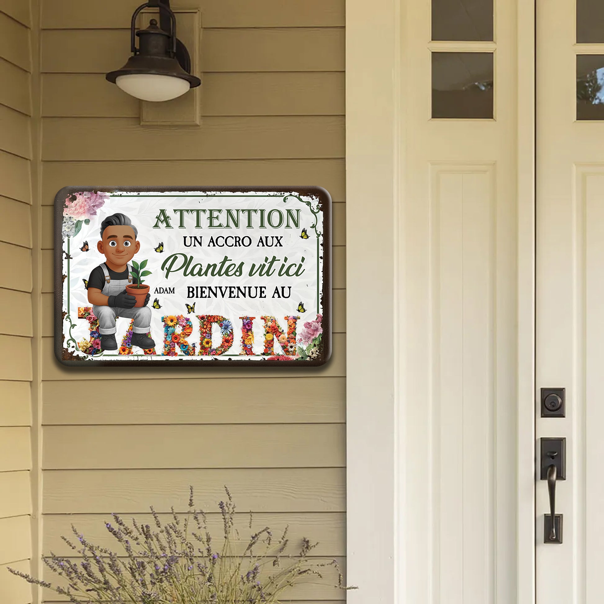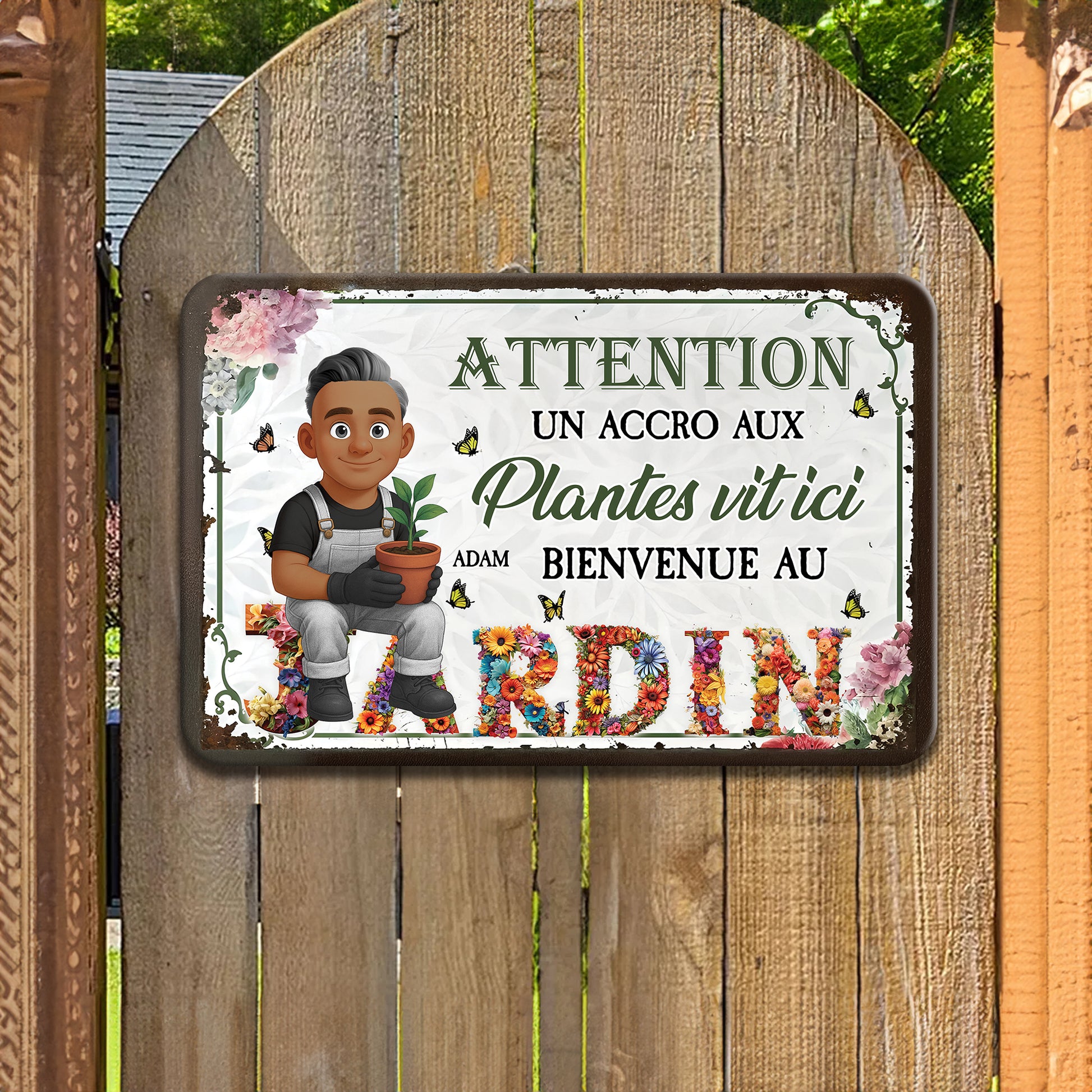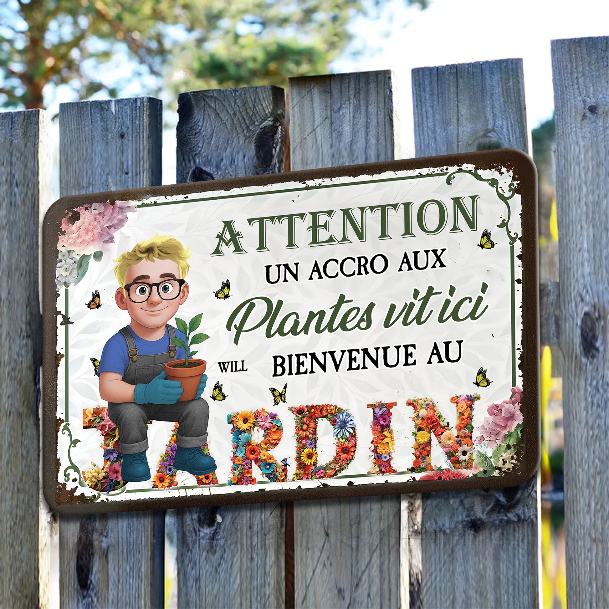 Attention ! Un Accro Aux Plantes Vit ici Bienvenue Au Jardin– Plaque En Métal Personnalisée