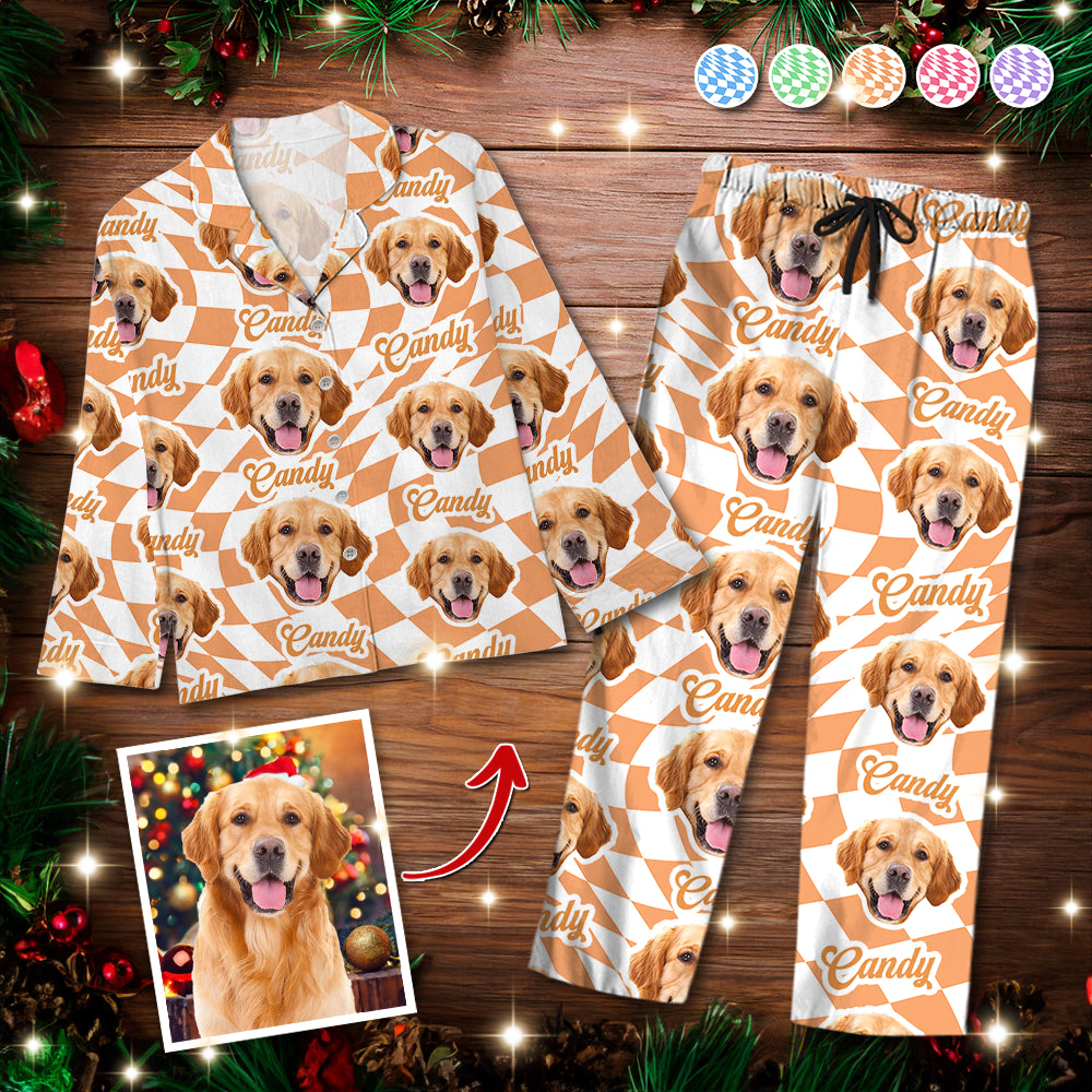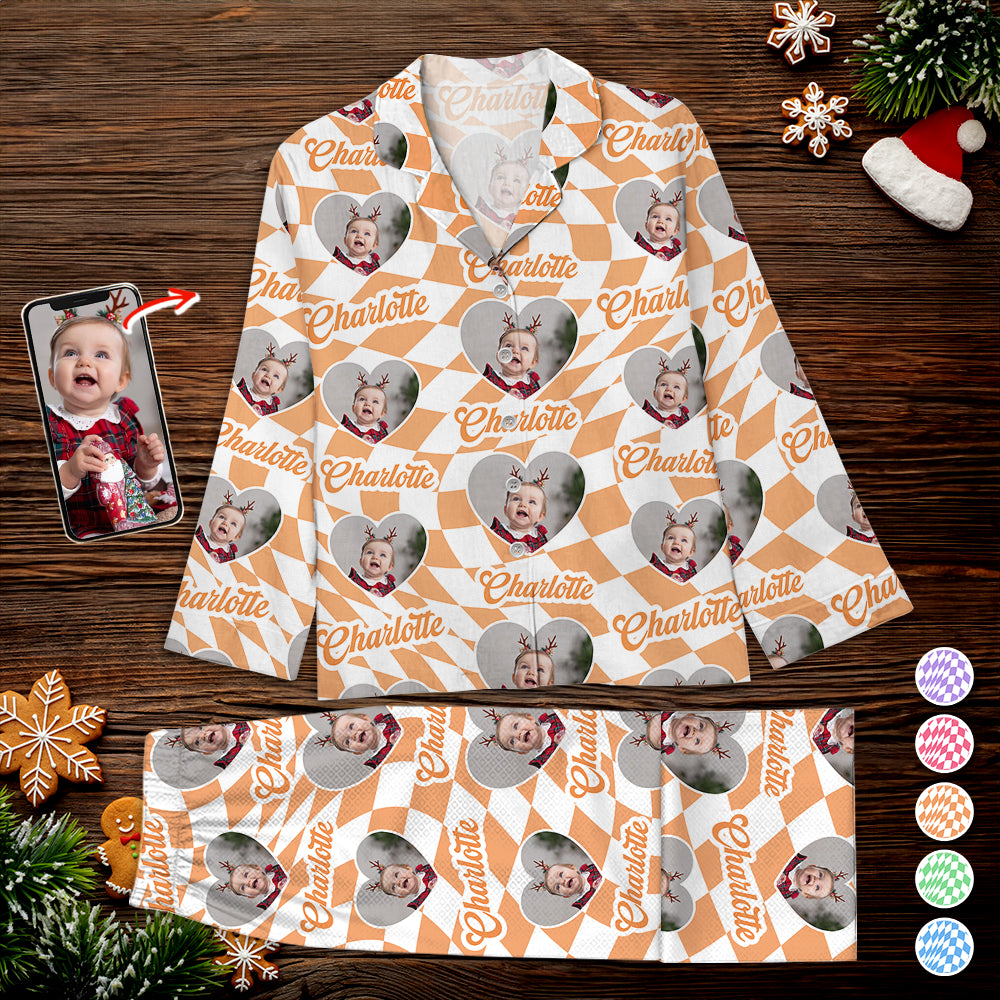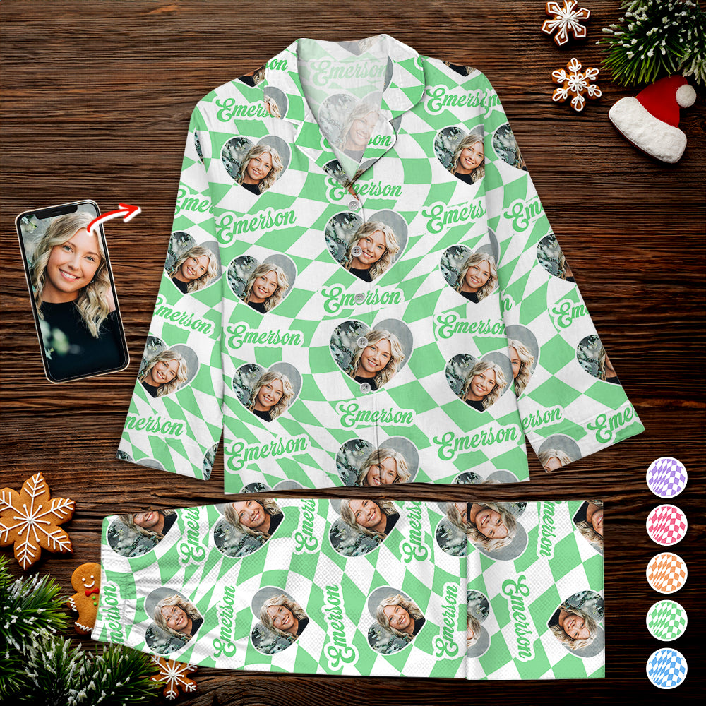 Ensemble de Pyjama de Noël à Motif Damier Vans Personnalisé - Pyjama Assorti Personnalisé pour Couple