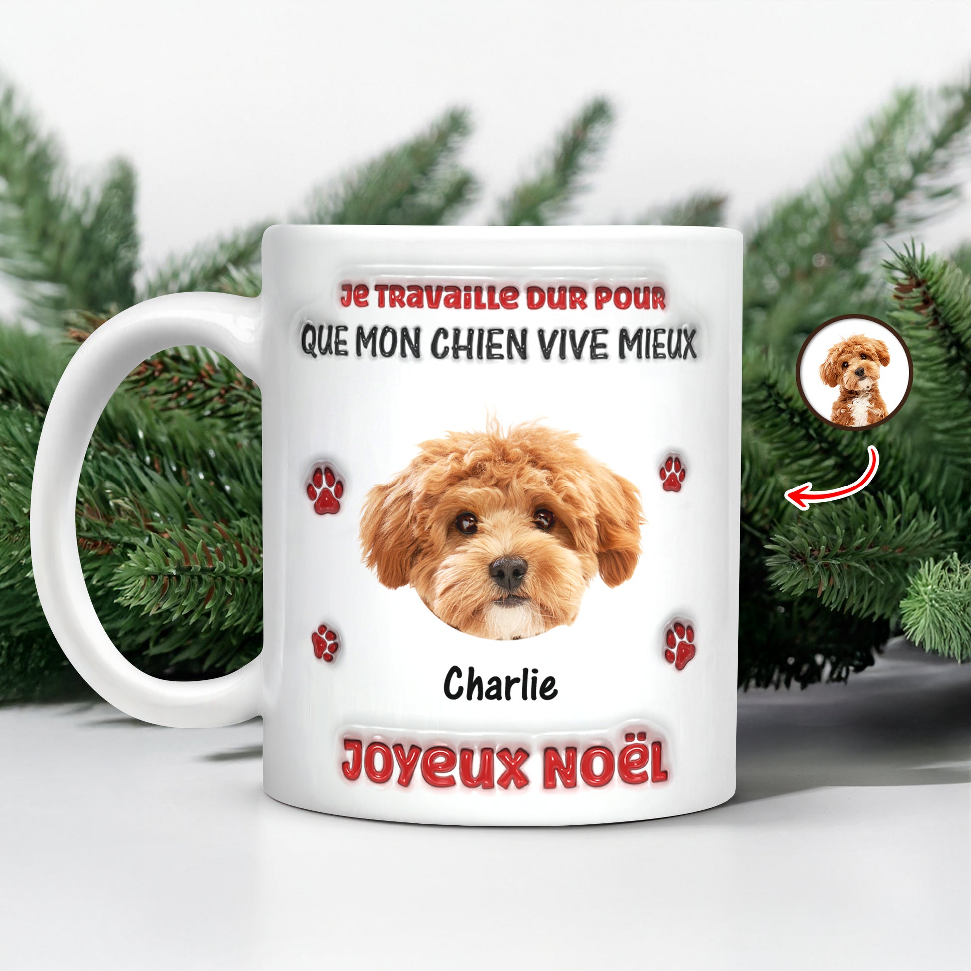 Je Travaille Dur Pour Que Mon Chien Vive Mieux - Mug Personnalisé 3D Gonflé Effet