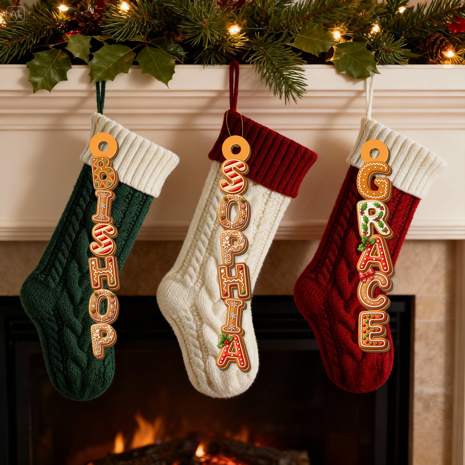 Personnalisé au Nom de Famille Ornement de Noël – Décoration en Bois avec Chaussette