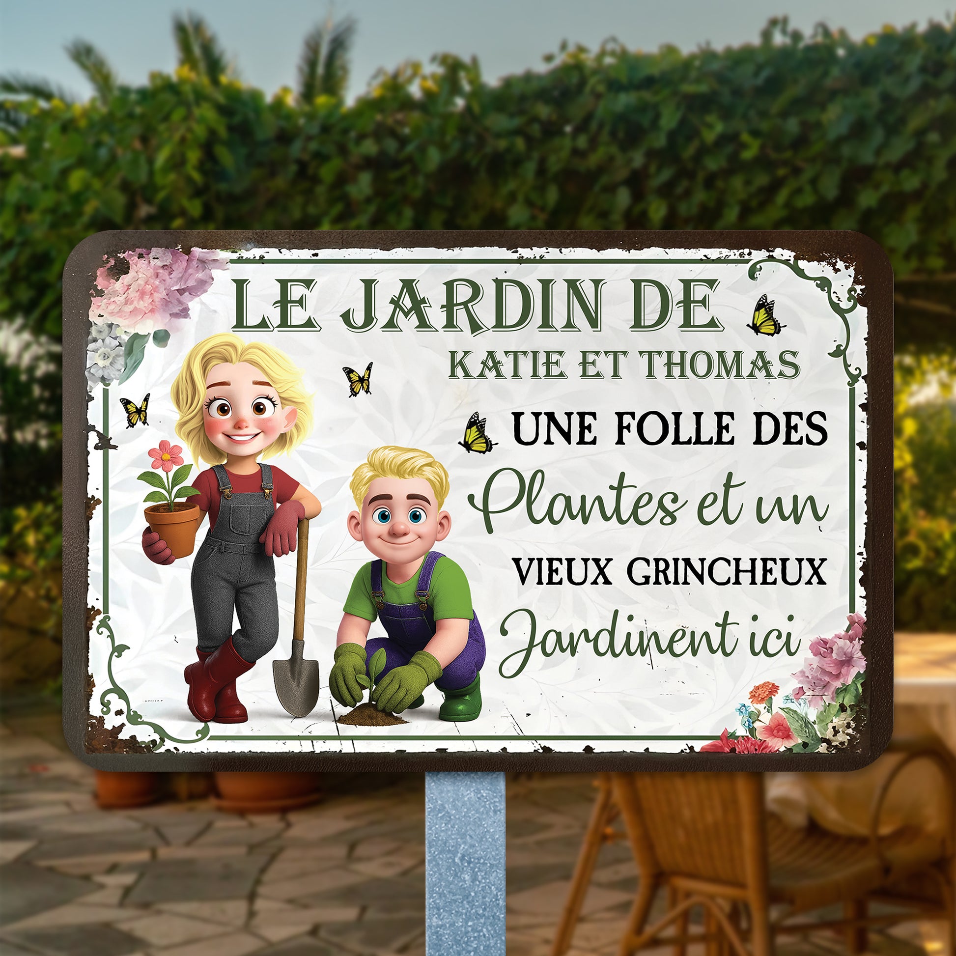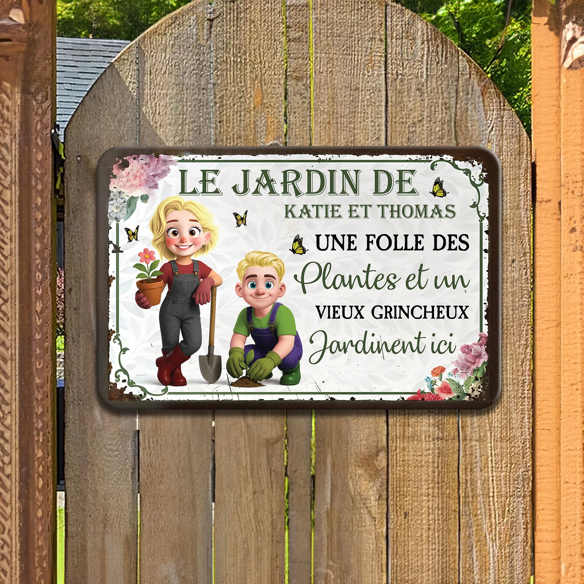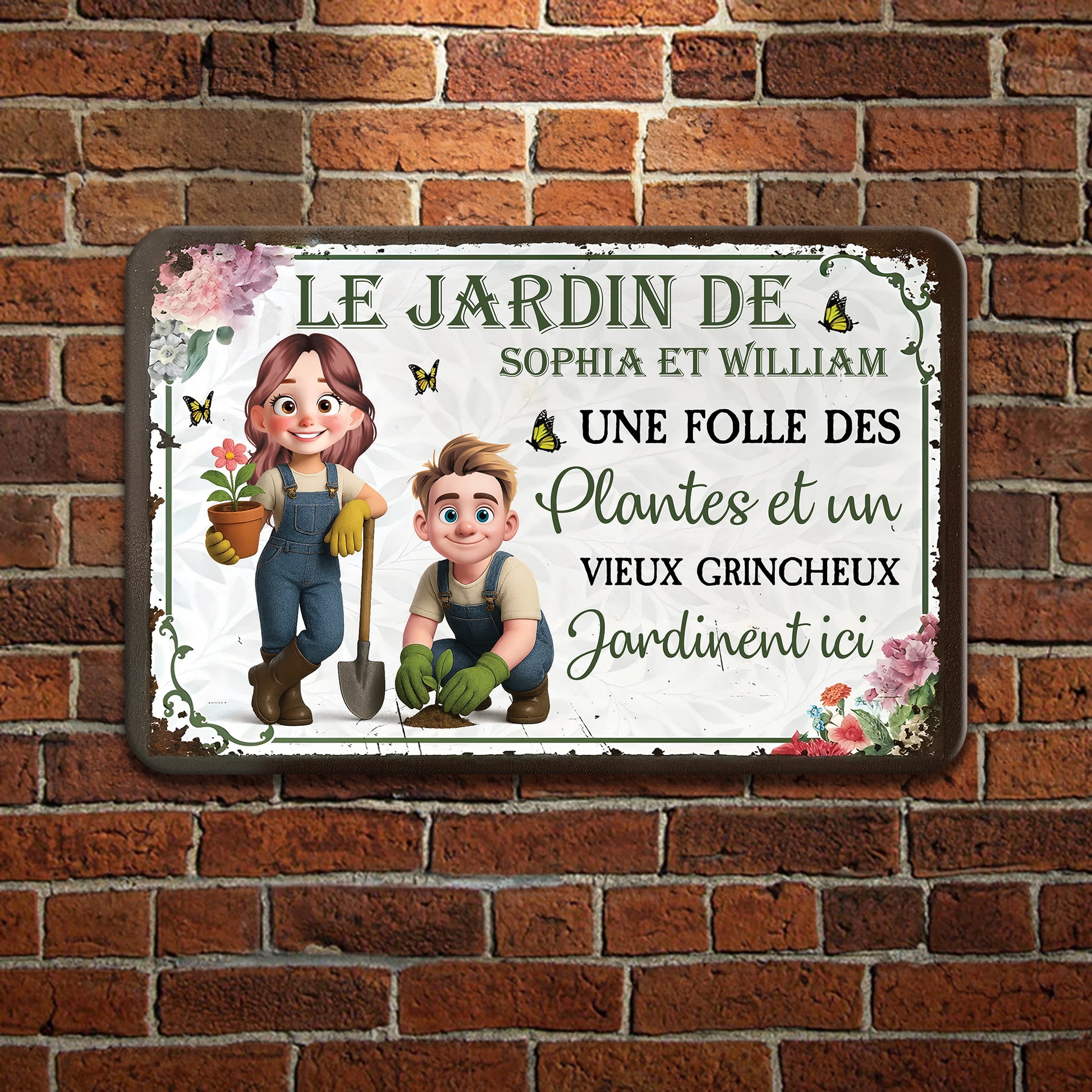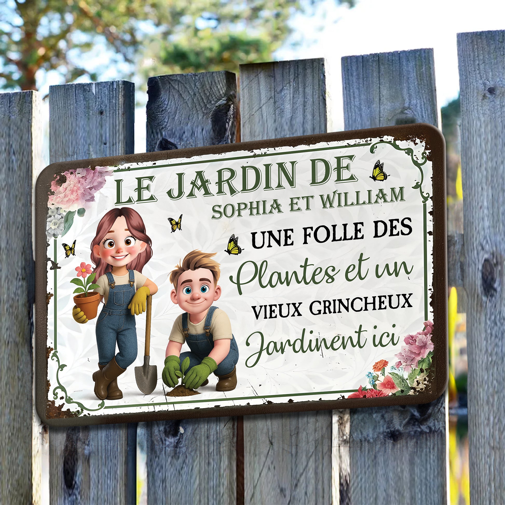 Une Folle Des Plantes et Un Vieux Grincheux – Plaque En Métal Personnalisée