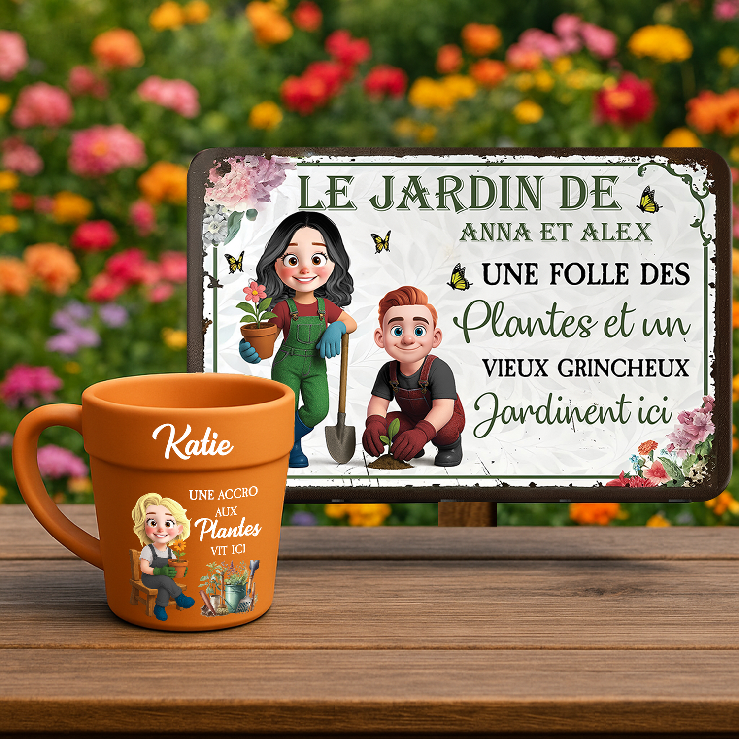 Nos enseignes de jardin personnalisées et mugs en forme de pot de fleurs sont faits pour ceux qui aiment passer du temps parmi les plantes. 🌻